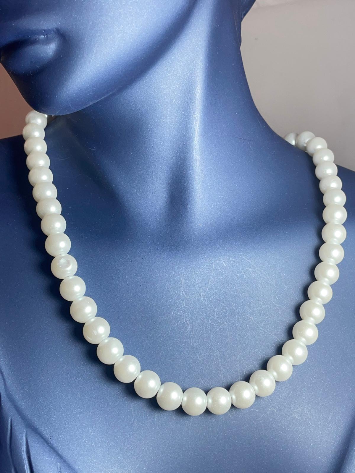 Krem Rengi Yassı Akrilik Boncuk Kolye