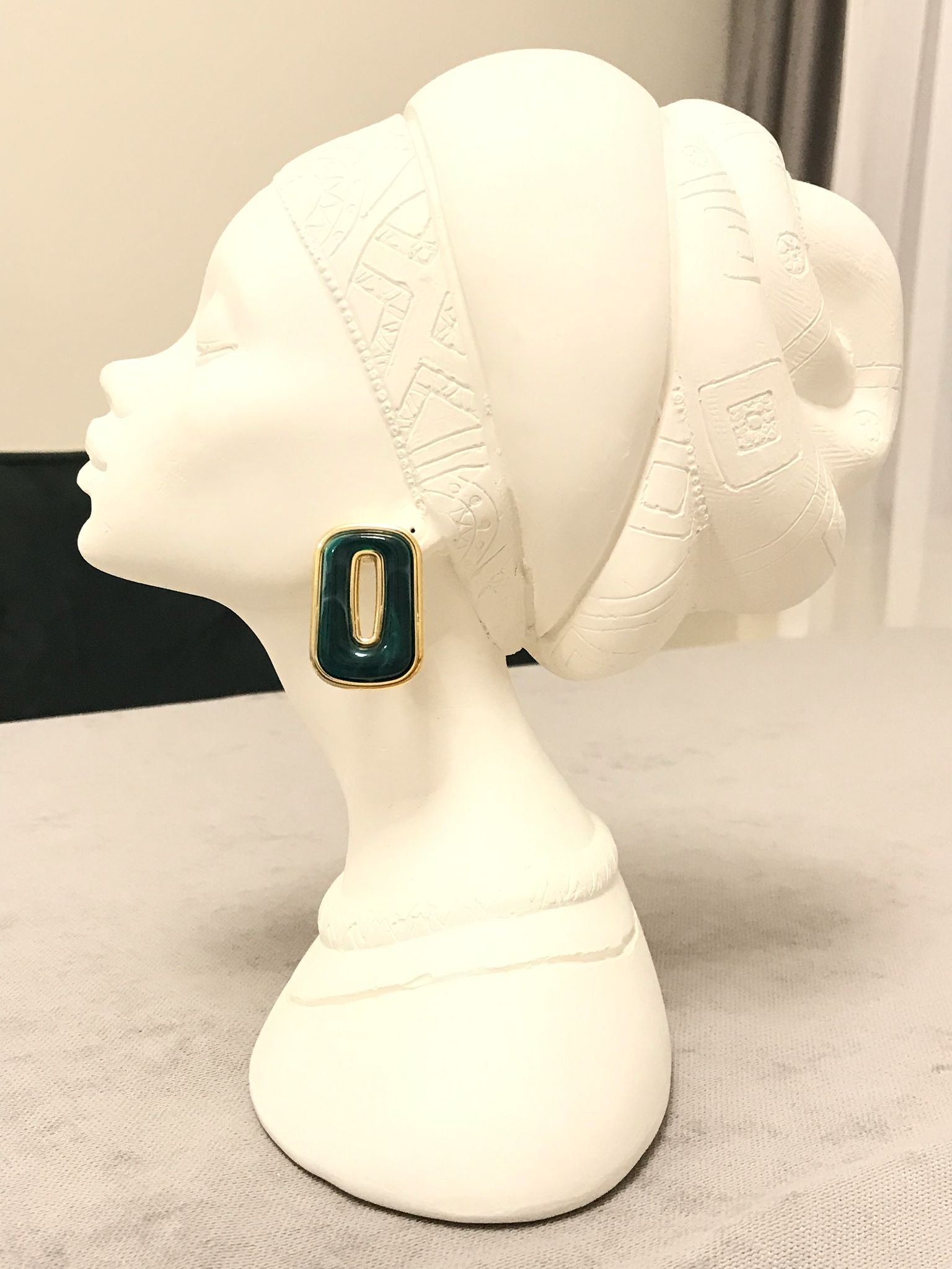 Gold Koyu Yeşil Dikdörtgen Küpe