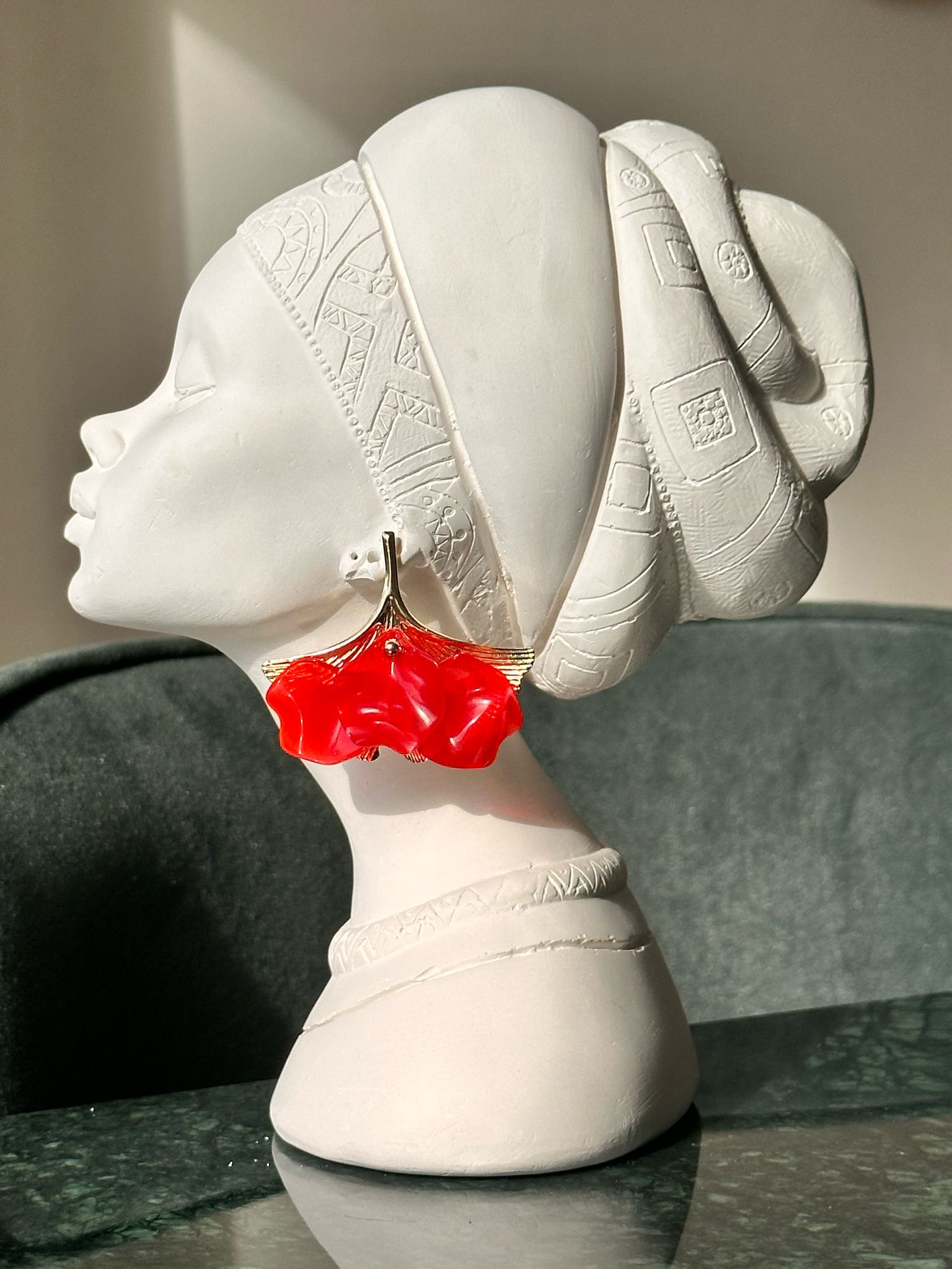 Başaşağı tutturulmuş kırmızı çiçek küpe, zarifliği ve şıklığı bir arada sunan özel bir takı parçasıdır. Her bir ayrıntısıyla dikkat çeken bu küpe, her yaştan kadının stiline eşlik edecek bir parça olarak tasarlanmıştır.