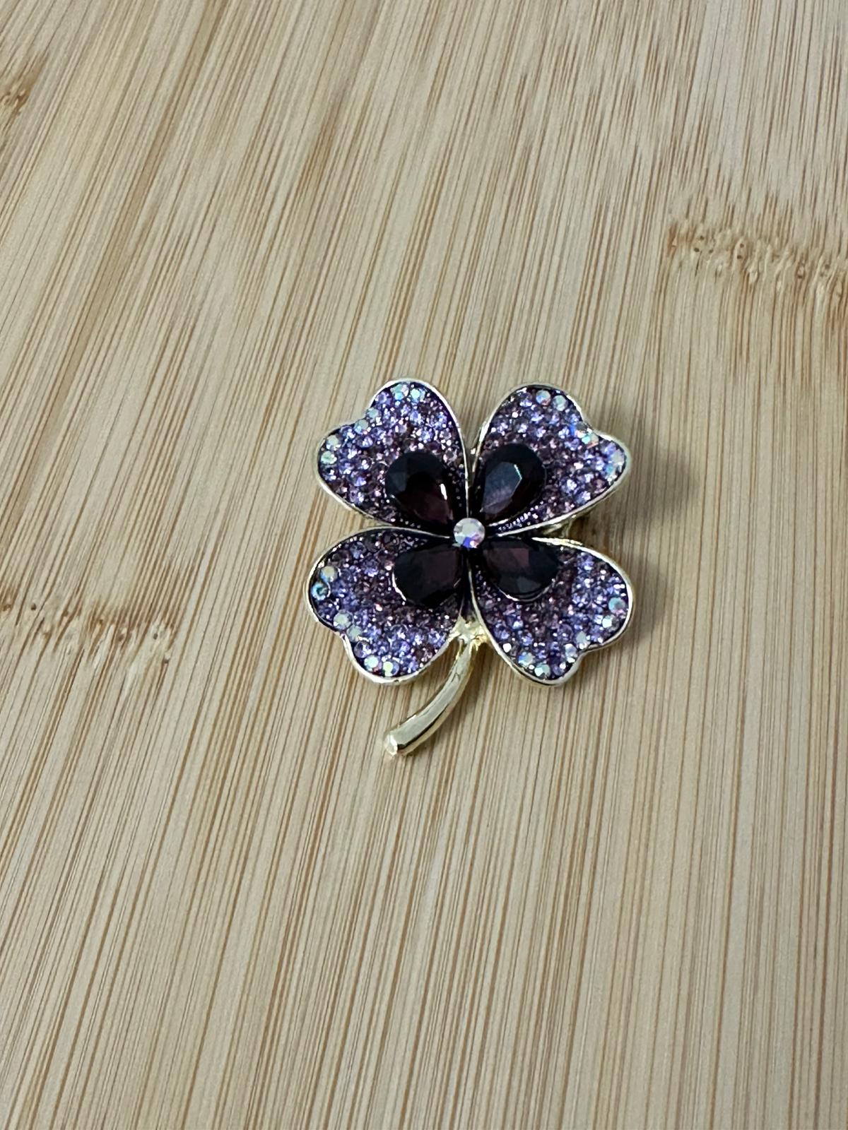 Dört Yaprak Yonca Broş Mor Taş Detay