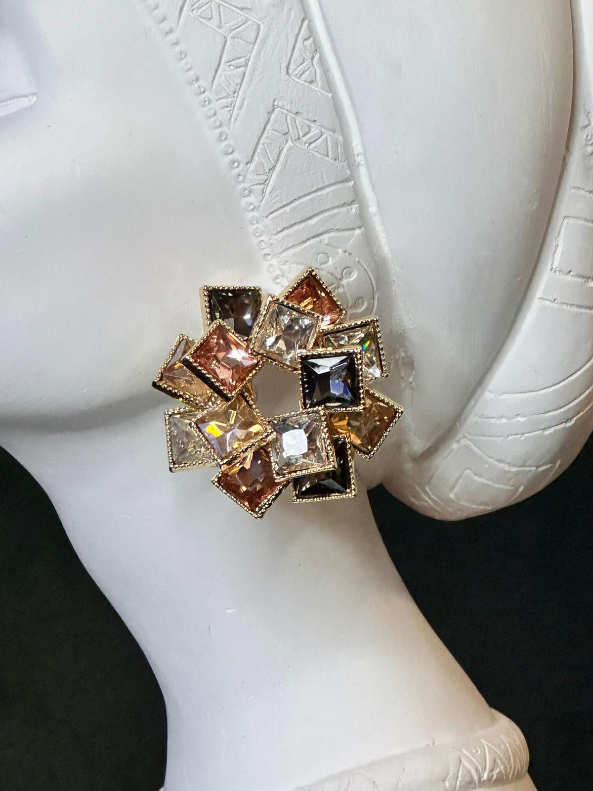 Gold Pudra Tonlarda Kare Taşlı Halka Küpe