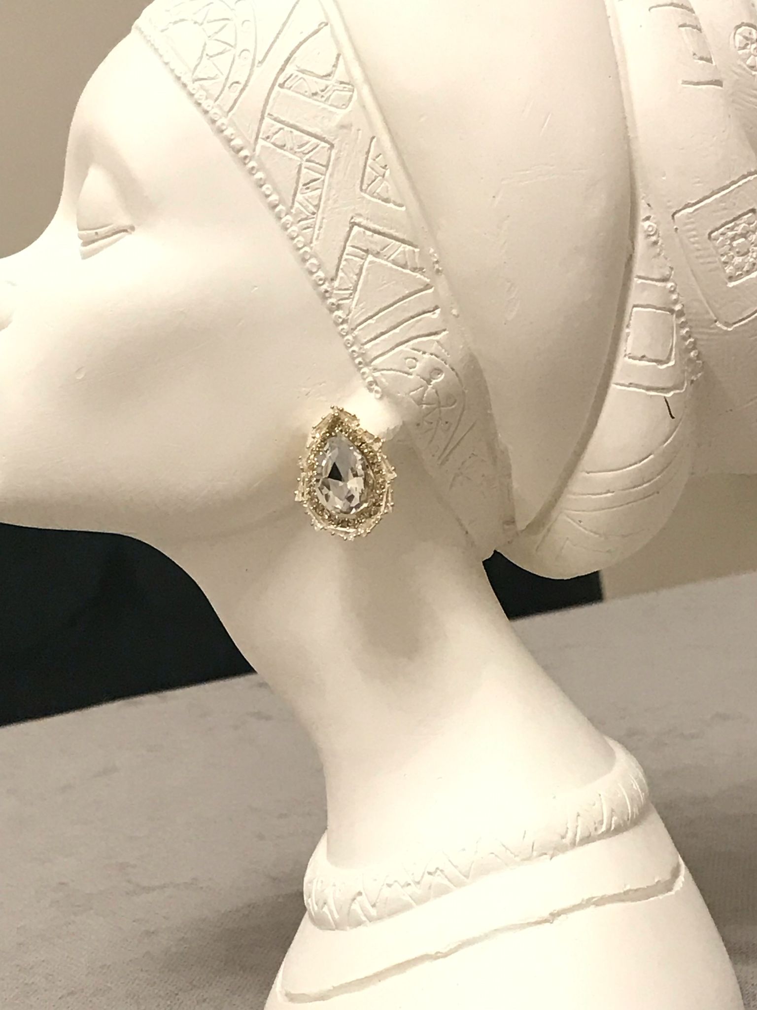 Gold Rengi Beyaz Damla Taş Küpe