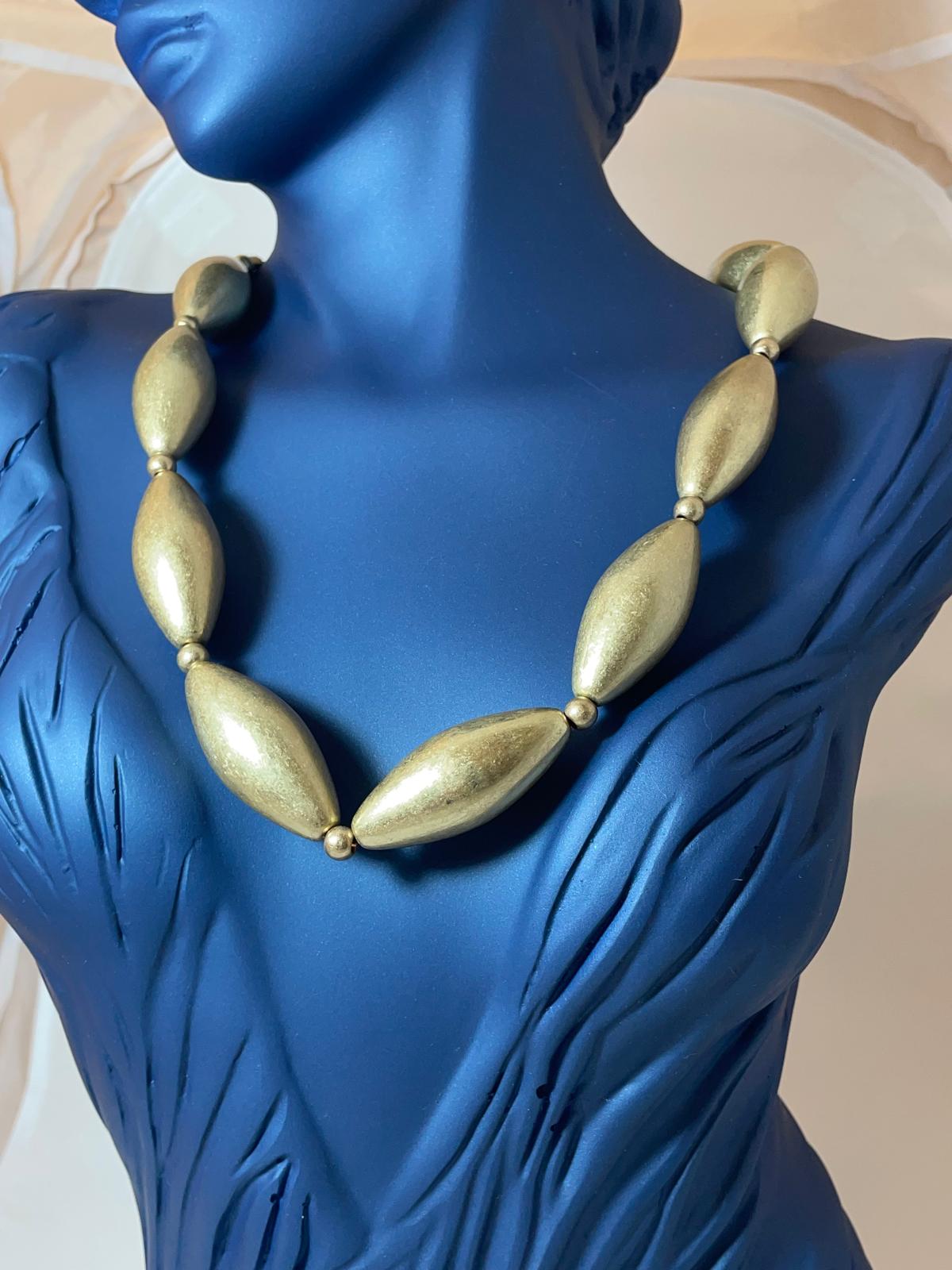 Gold Rengi Eskitme Badem Kolye