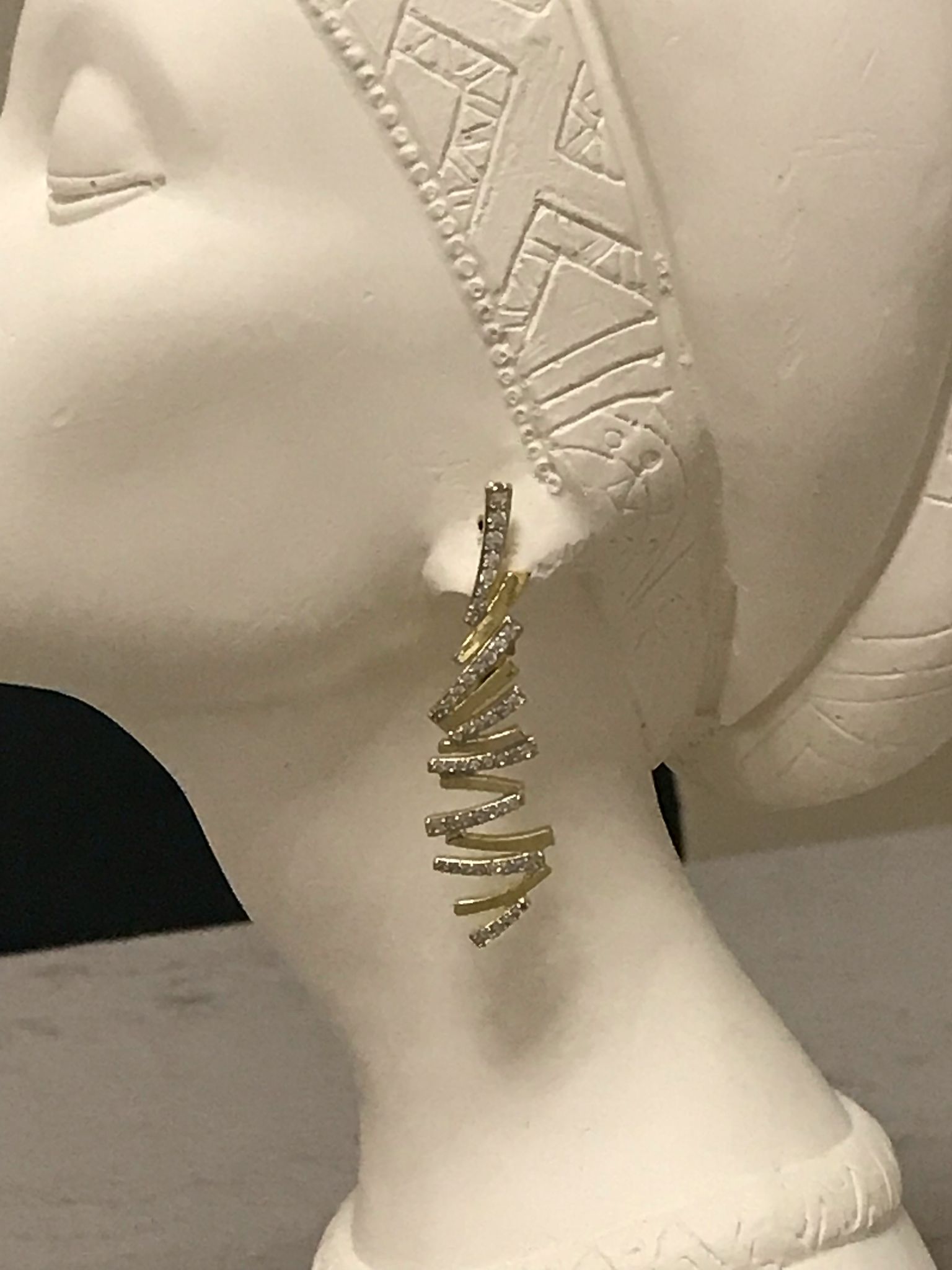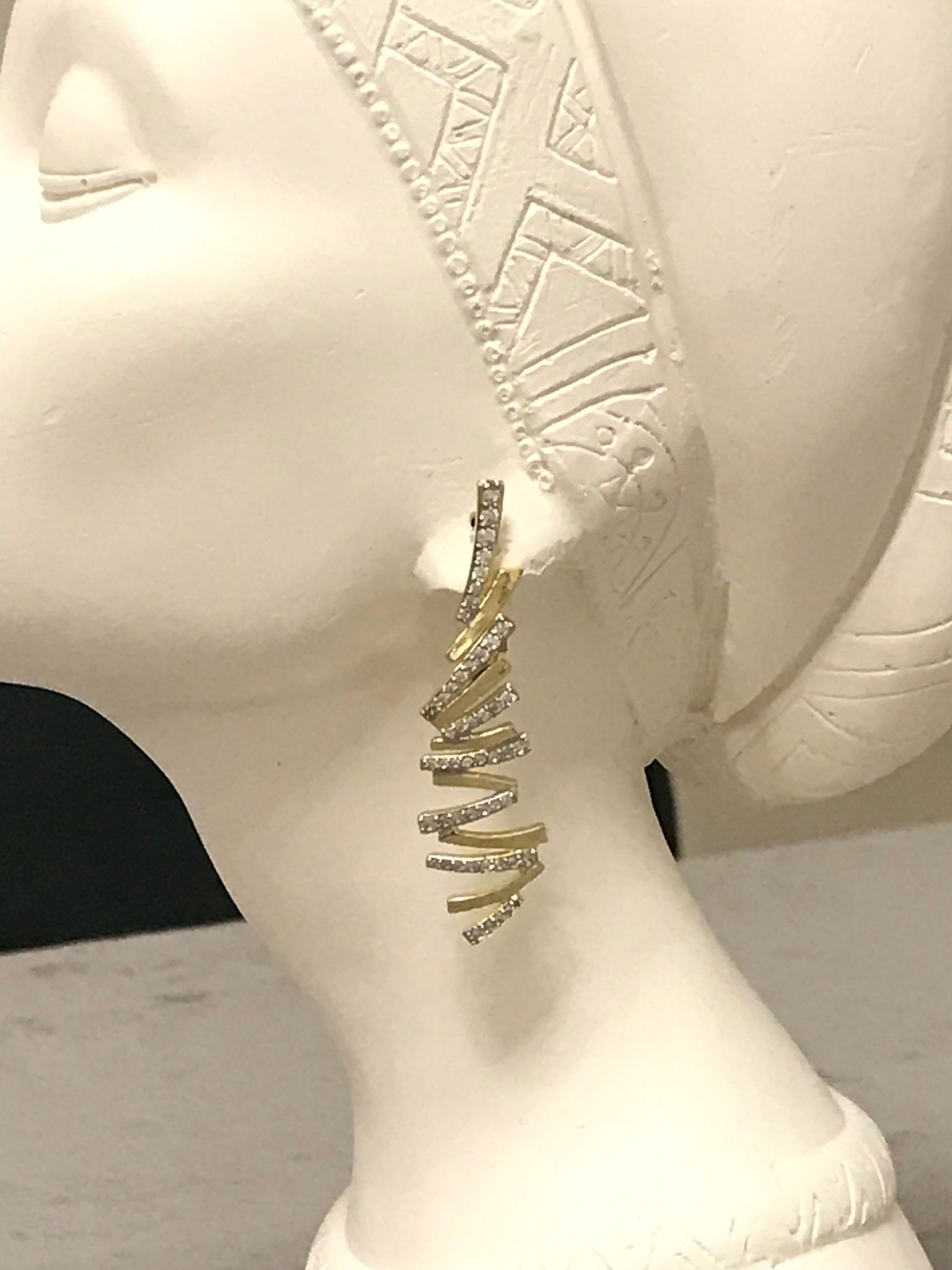 Gold Rengi Zigzag Model Taş Detay Küpe