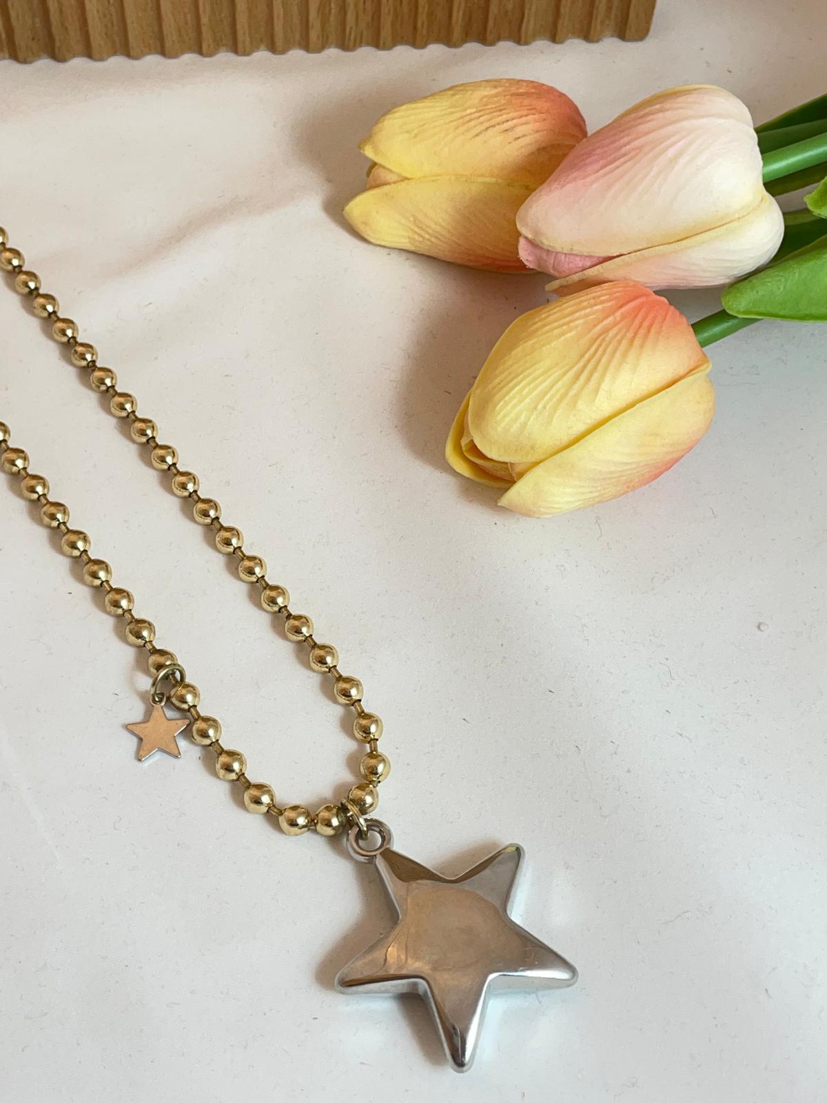 Gold Top Kolye Gümüş Yıldız Detaylı