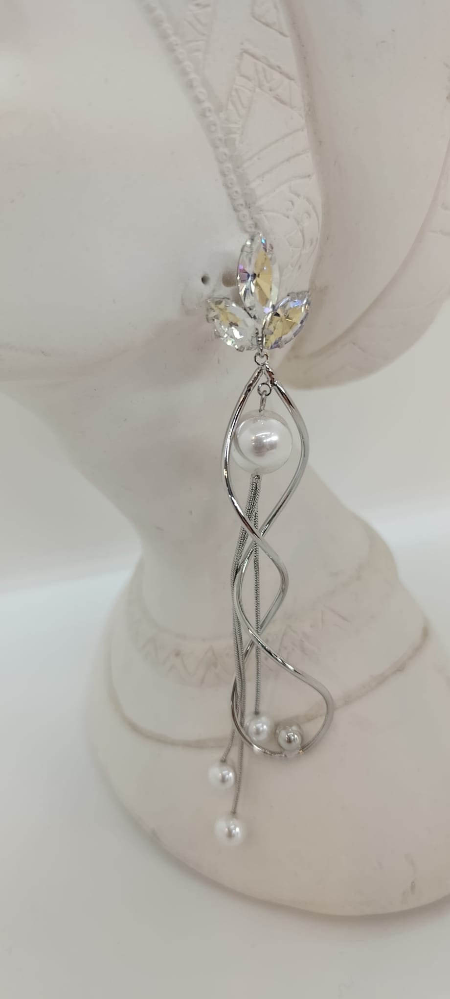 İnci Detay Gümüş Renk Sarkıtmalı Küpe