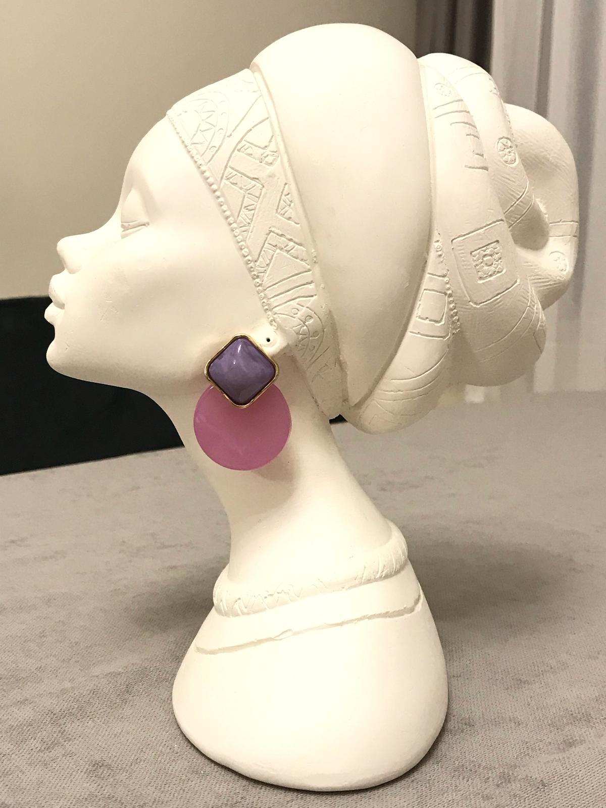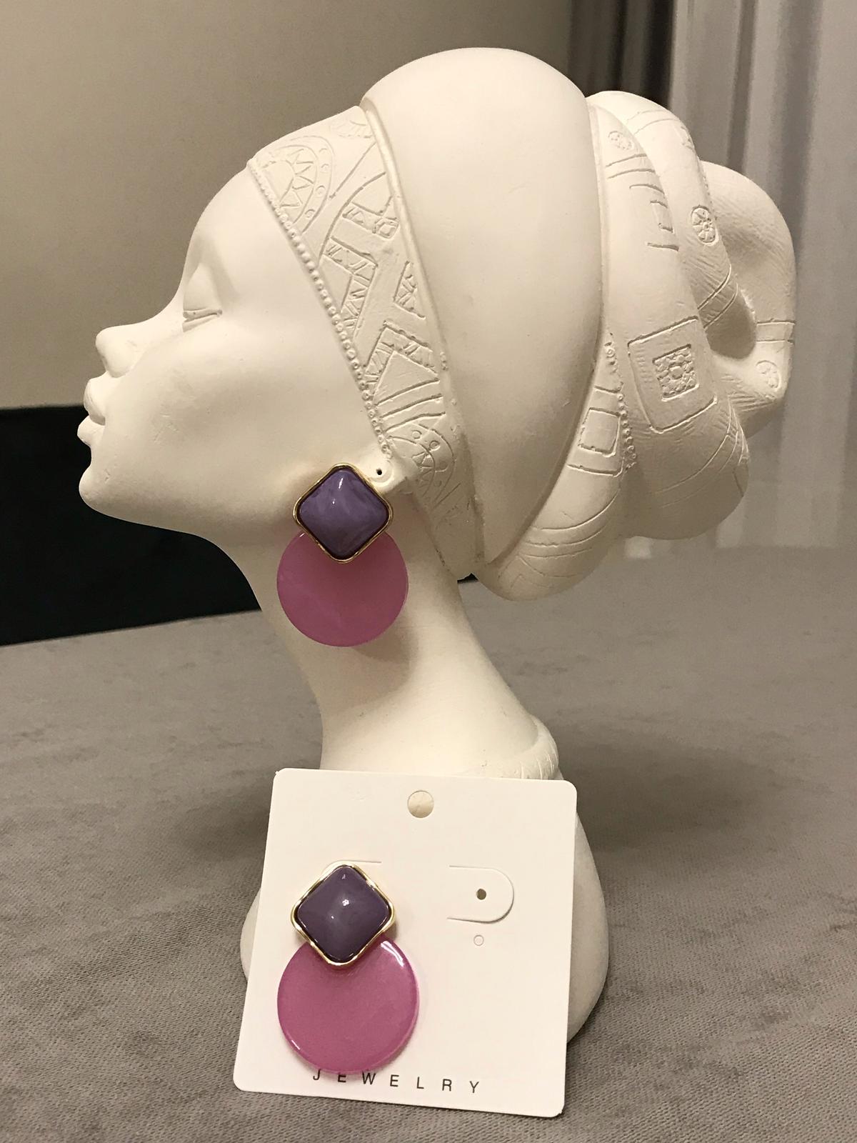 Pembe Lila Yuvarlak Detay Küpe