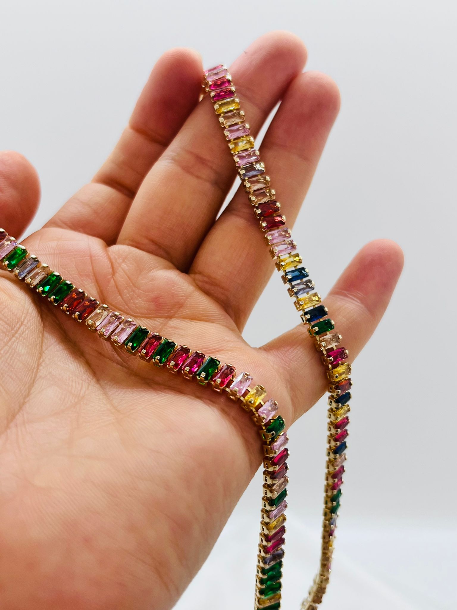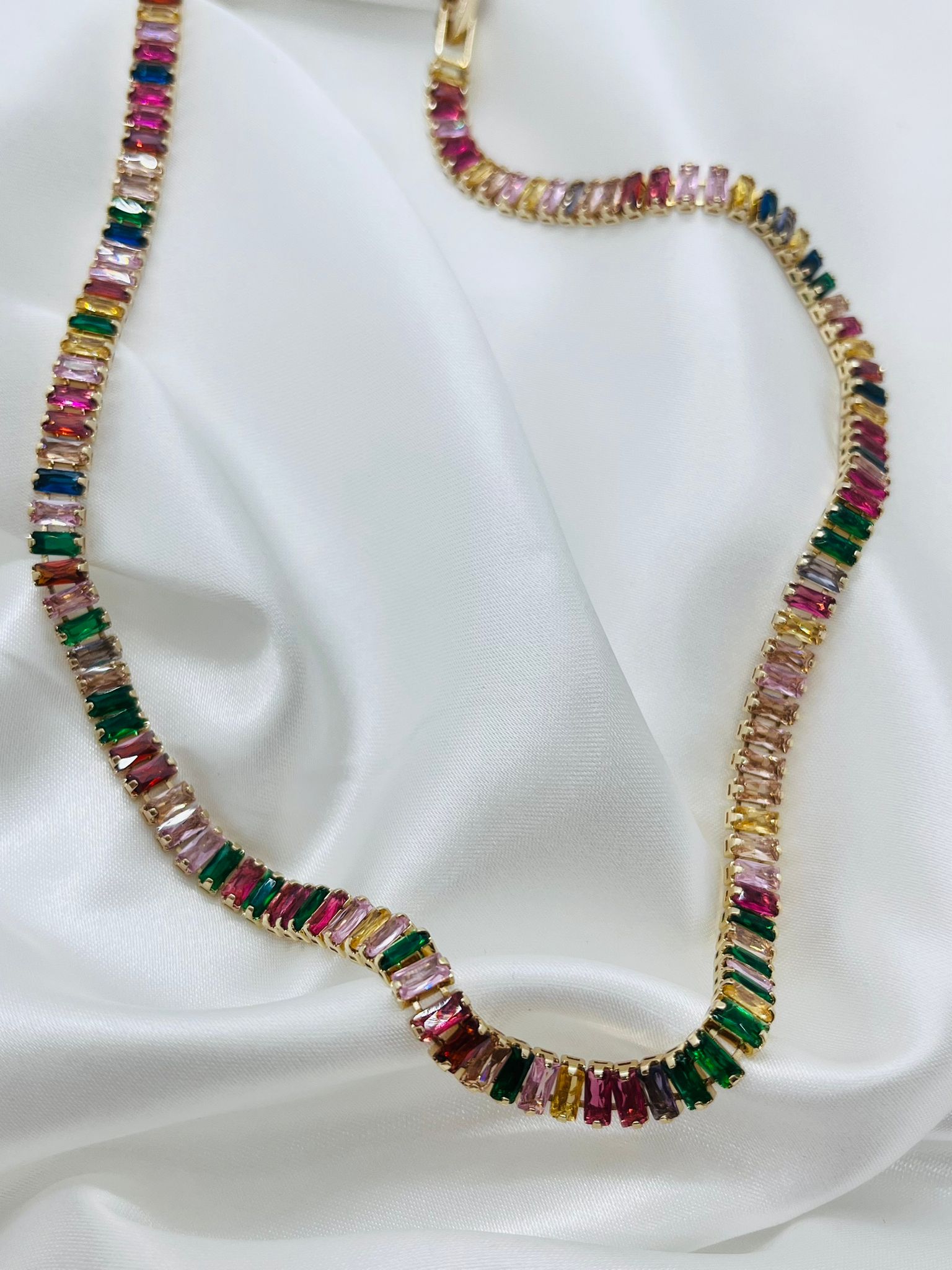 Renkli Taşlı Su Yolu Kolye Gold Rengi