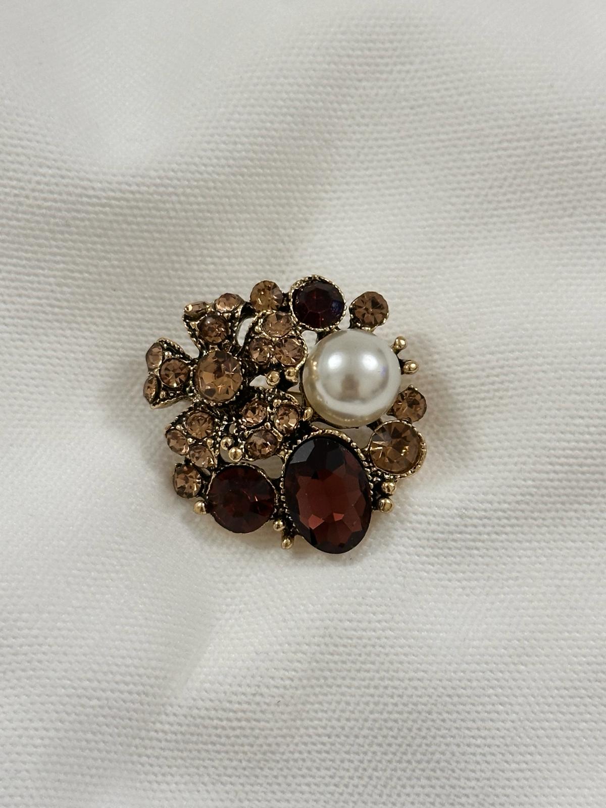 Vintage Tarzı İnci ve Kehribar Tonlu Broş